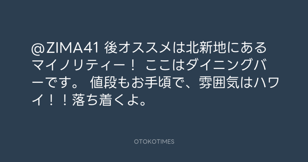 @ZIMA41 後オススメは北新地にあるマイノリティー! ここはダイニングバーです。 ... -