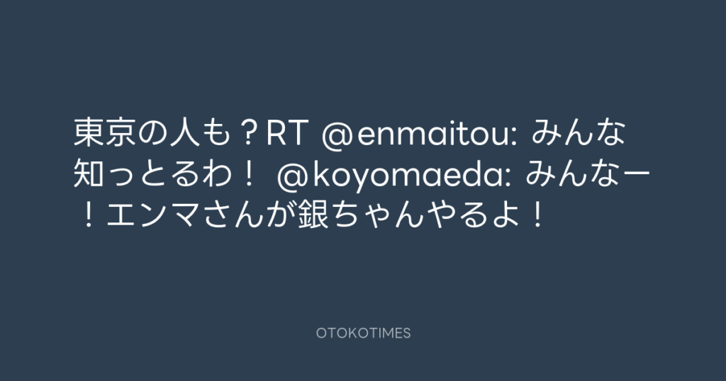 東京の人も?RT @enmaitou: みんな知っとるわ! @koyomaeda: みんなー!エンマさん... -