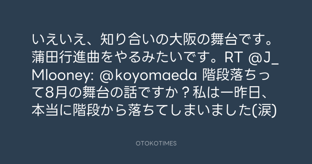 いえいえ、知り合いの大阪の舞台です。蒲田行進曲をやるみたいです。RT @J_Mlooney... -