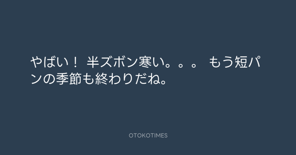 やばい! 半ズボン寒い。。。 もう短パンの季節も終わりだね。