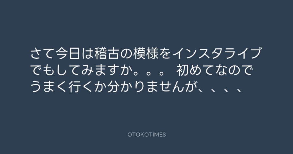 さて今日は稽古の模様をインスタライブでもしてみますか。。。 初めてなのでうまく... -