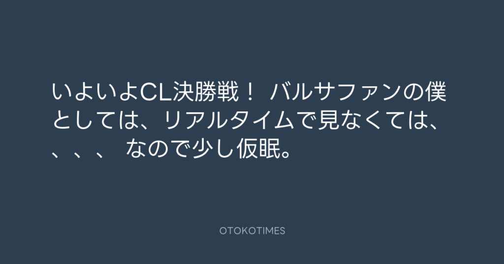 いよいよCL決勝戦! バルサファンの僕としては、リアルタイムで見なくては、、、、... -