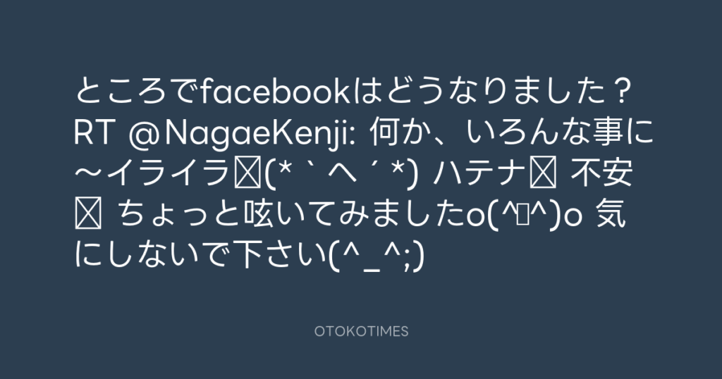 ところでfacebookはどうなりました?RT @NagaeKenji: 何か、いろんな事に~イライ... -