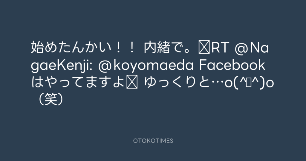 始めたんかい!! 内緒で。RT @NagaeKenji: @koyomaeda Facebookはやってますよ‼ ... -