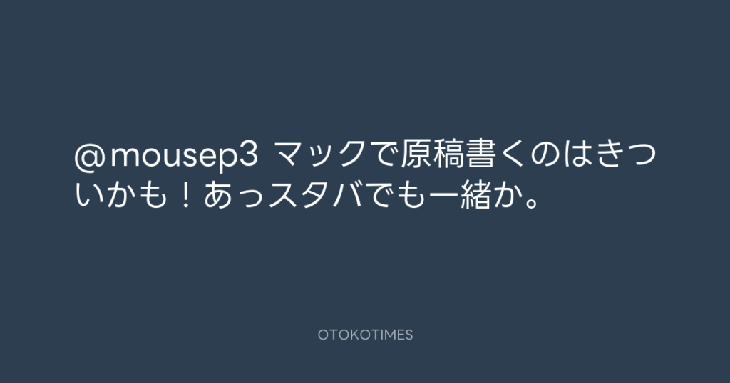 @mousep3 マックで原稿書くのはきついかも!あっスタバでも一緒か。