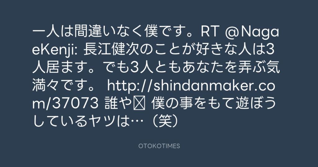 一人は間違いなく僕です。RT @NagaeKenji: 長江健次のことが好きな人は3人居ます。... -