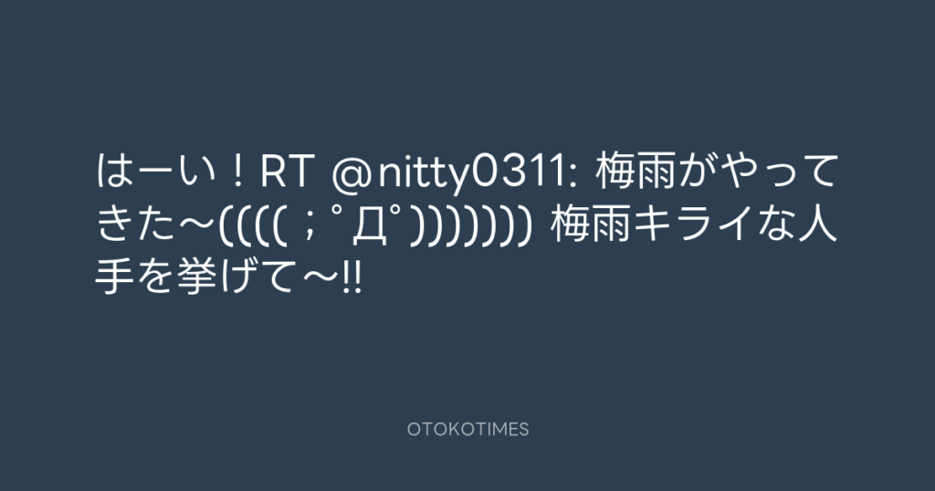 はーい!RT @nitty0311: 梅雨がやってきた~((((;゚Д゚))))))) 梅雨キライな人手を... -