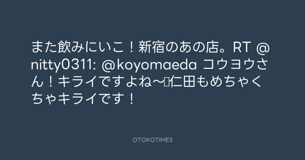 また飲みにいこ!新宿のあの店。RT @nitty0311: @koyomaeda コウヨウさん!キライ... -