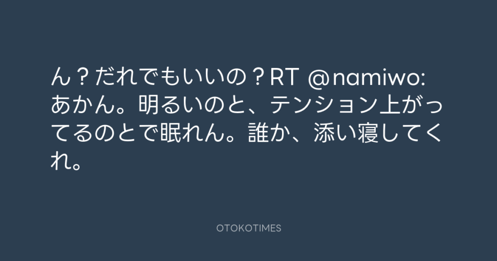 ん?だれでもいいの?RT @namiwo: あかん。明るいのと、テンション上がってるのと... -