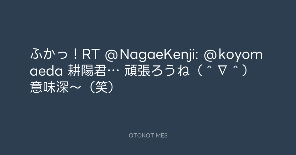 ふかっ!RT @NagaeKenji: @koyomaeda 耕陽君… 頑張ろうね(^∇^) 意味深~(笑) -