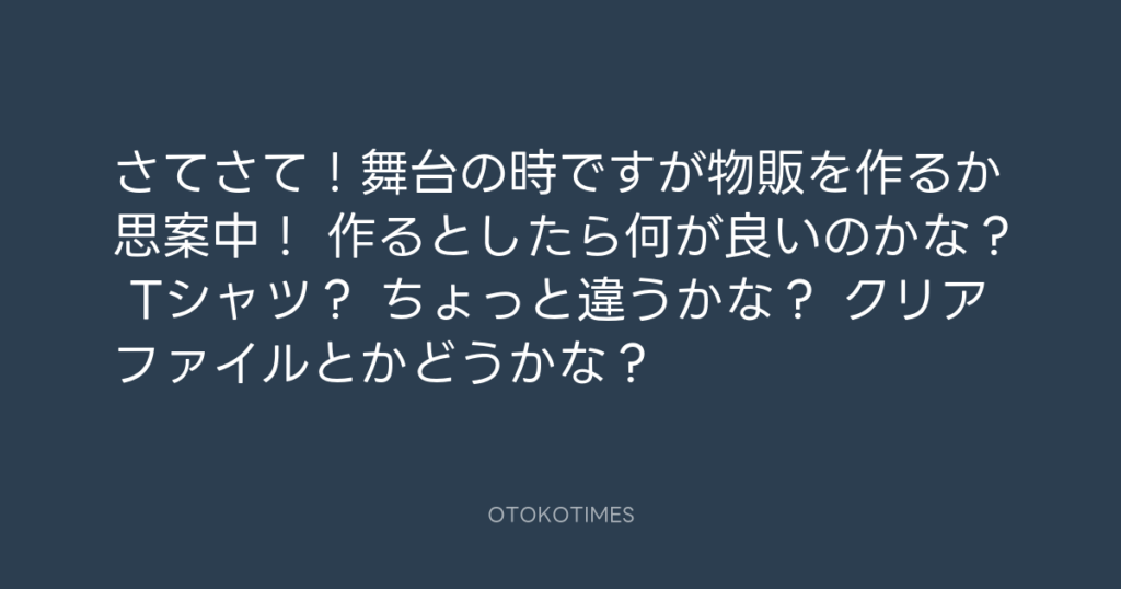 さてさて!舞台の時ですが物販を作るか思案中! 作るとしたら何が良いのかな? Tシ... -