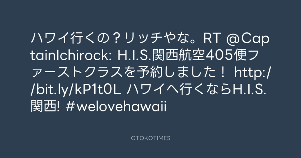 ハワイ行くの?リッチやな。RT @CaptainIchirock: H.I.S.関西航空405便ファースト... -