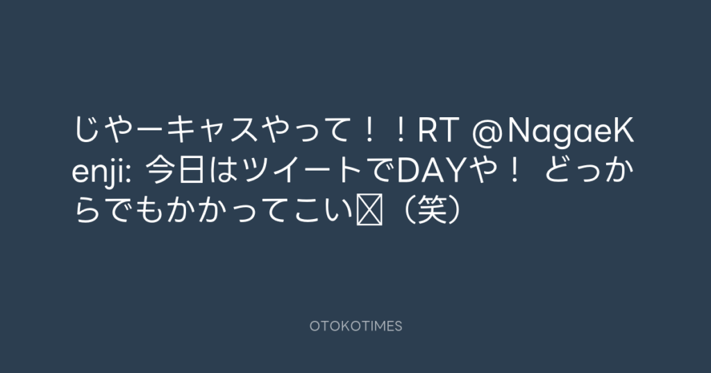 じやーキャスやって!!RT @NagaeKenji: 今日はツイートでDAYや! どっからでもか... -