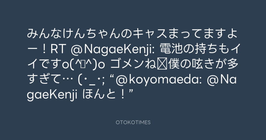 みんなけんちゃんのキャスまってますよー!RT @NagaeKenji: 電池の持ちもイイですo... -