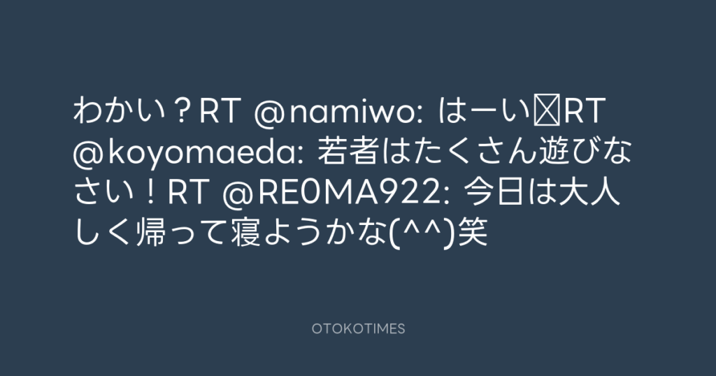 わかい?RT @namiwo: はーいRT @koyomaeda: 若者はたくさん遊びなさい!RT @RE0MA...