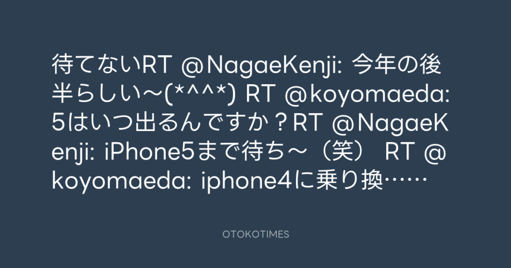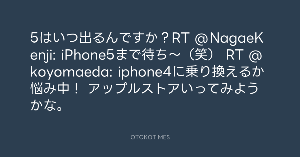 5はいつ出るんですか?RT @NagaeKenji: iPhone5まで待ち~(笑) RT @koyomaeda: i... -
