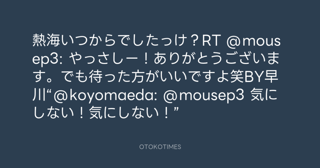 熱海いつからでしたっけ?RT @mousep3: やっさしー!ありがとうございます。でも待... -