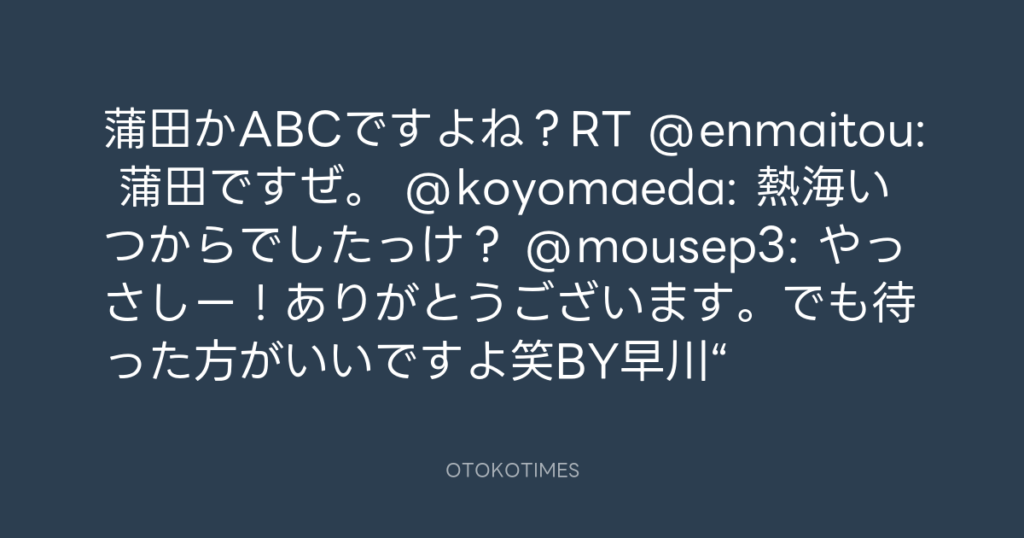 蒲田かABCですよね?RT @enmaitou: 蒲田ですぜ。 @koyomaeda: 熱海いつからでした... -