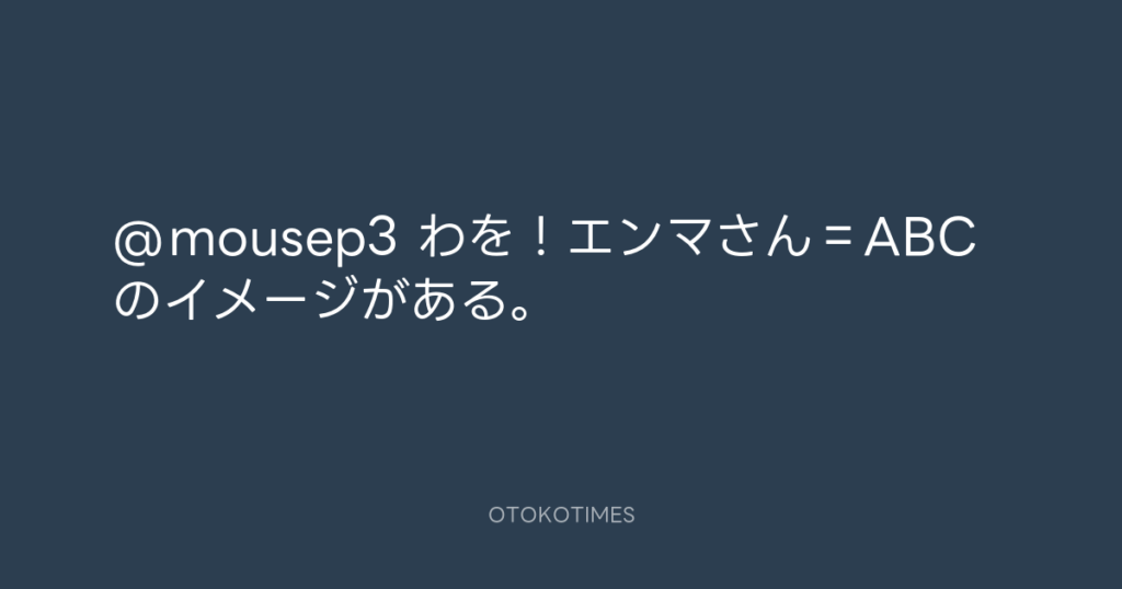 @mousep3 わを!エンマさん=ABC のイメージがある。 -