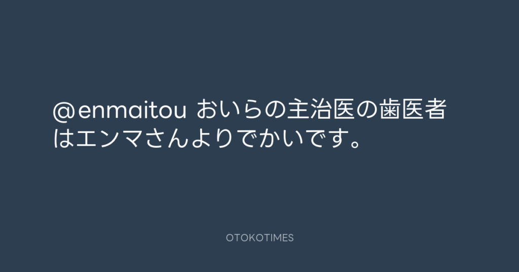 @enmaitou おいらの主治医の歯医者はエンマさんよりでかいです。 -