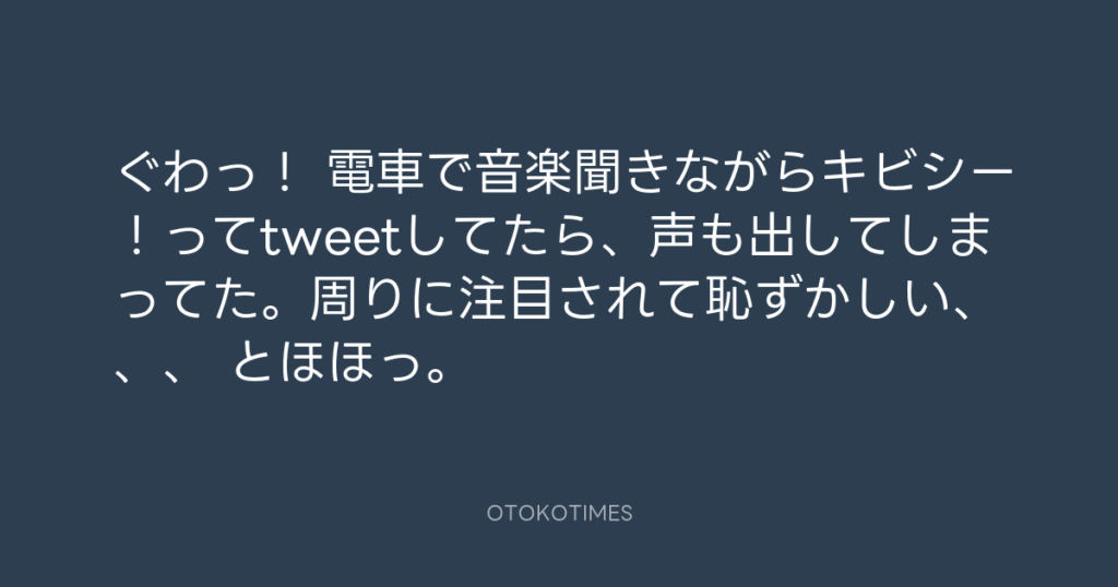 ぐわっ! 電車で音楽聞きながらキビシー!ってtweetしてたら、声も出してしまって...