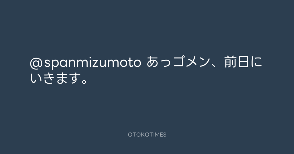 @spanmizumoto あっゴメン、前日にいきます。 -