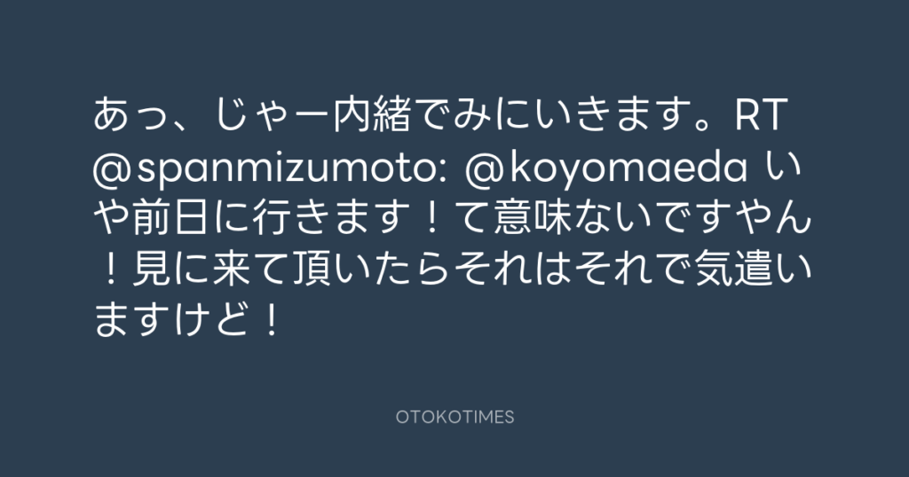 あっ、じゃー内緒でみにいきます。RT @spanmizumoto: @koyomaeda いや前日に行きま... -