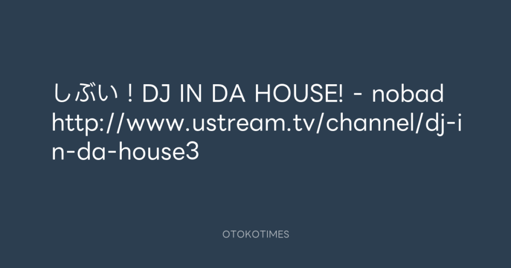 しぶい!DJ IN DA HOUSE! - nobad http://www.ustream.tv/channel/dj-in-da-house3 -
