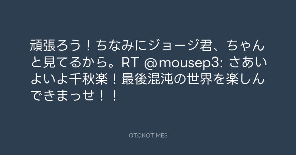 頑張ろう!ちなみにジョージ君、ちゃんと見てるから。RT @mousep3: さあいよいよ千...