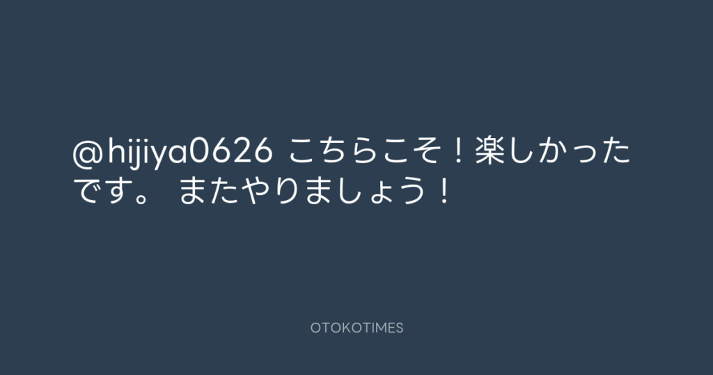@hijiya0626 こちらこそ!楽しかったです。 またやりましょう! -