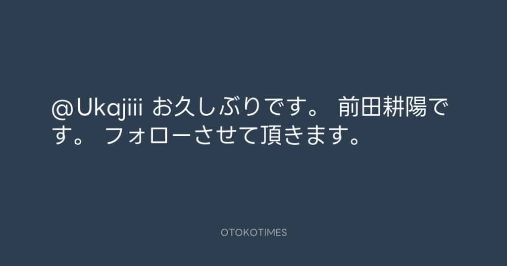 @Ukajiii お久しぶりです。 前田耕陽です。 フォローさせて頂きます。 -