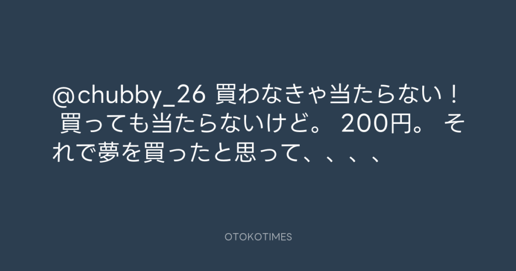 @chubby_26 買わなきゃ当たらない! 買っても当たらないけど。 200円。 それで夢を...