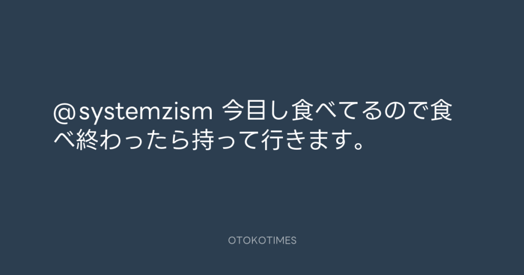 @systemzism 今目し食べてるので食べ終わったら持って行きます。 -