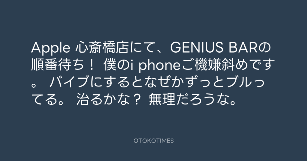 Apple 心斎橋店にて、GENIUS BARの順番待ち! 僕のi phoneご機嫌斜めです。 バイブ... -