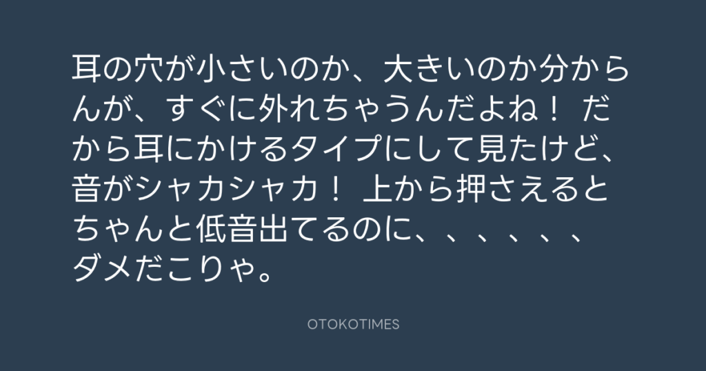 耳の穴が小さいのか、大きいのか分からんが、すぐに外れちゃうんだよね! だから耳... -