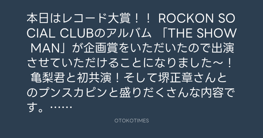 本日はレコード大賞!! ROCKON SOCIAL CLUBのアルバム 「THE SHOW MAN」が企画賞...