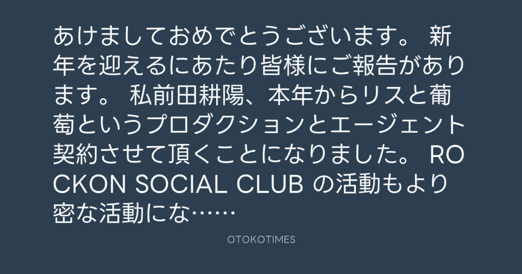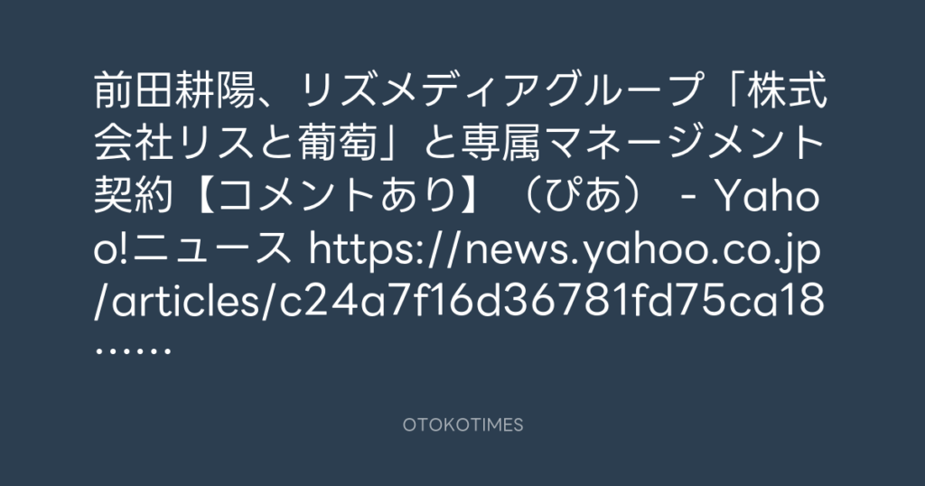 前田耕陽、リズメディアグループ「株式会社リスと葡萄」と専属マネージメント契約... -