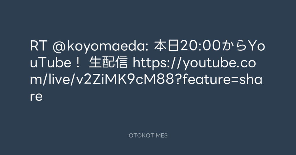 RT @koyomaeda: 本日20:00からYouTube! 生配信 https://youtube.com/live/v2ZiMK9... -