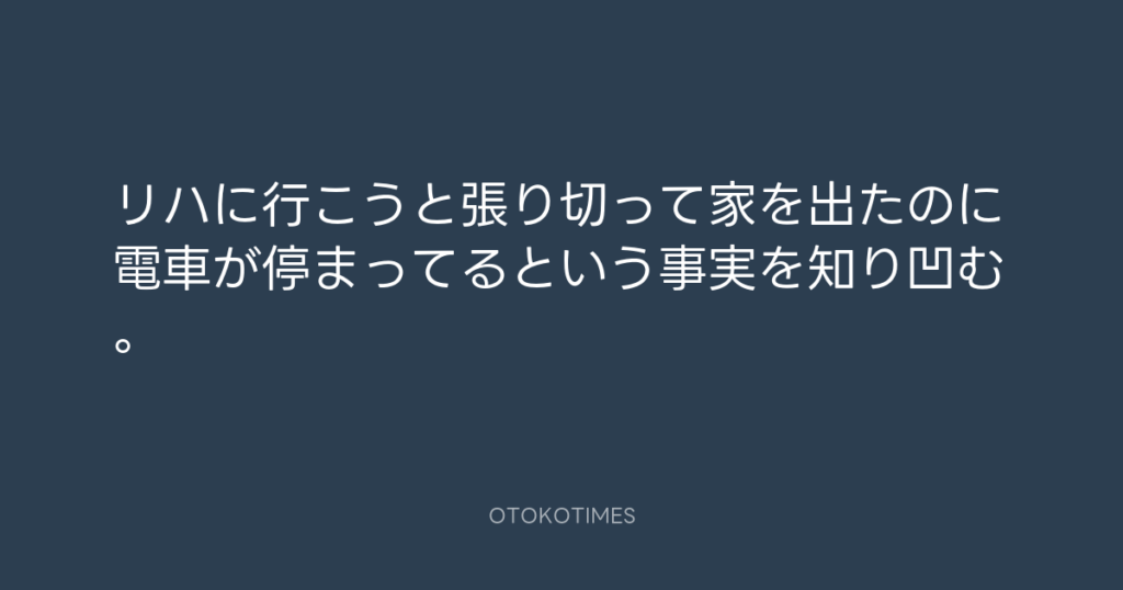 リハに行こうと張り切って家を出たのに電車が停まってるという事実を知り凹む。 -