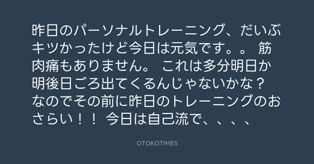昨日のパーソナルトレーニング、だいぶキツかったけど今日は元気です。。 筋肉痛も...