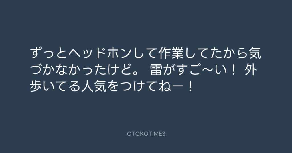 ずっとヘッドホンして作業してたから気づかなかったけど。 雷がすご〜い! 外歩い... -