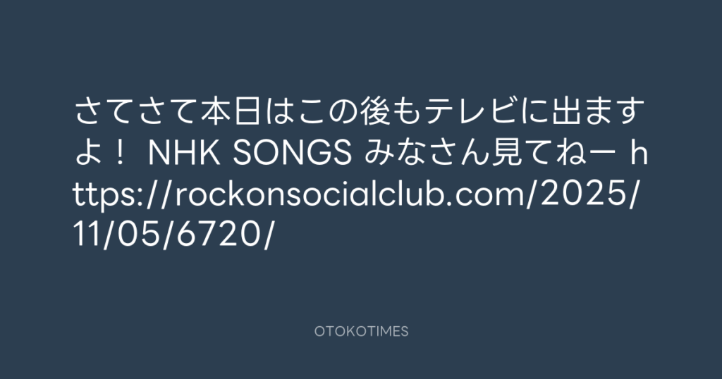 さてさて本日はこの後もテレビに出ますよ! NHK SONGS みなさん見てねー https://r... -