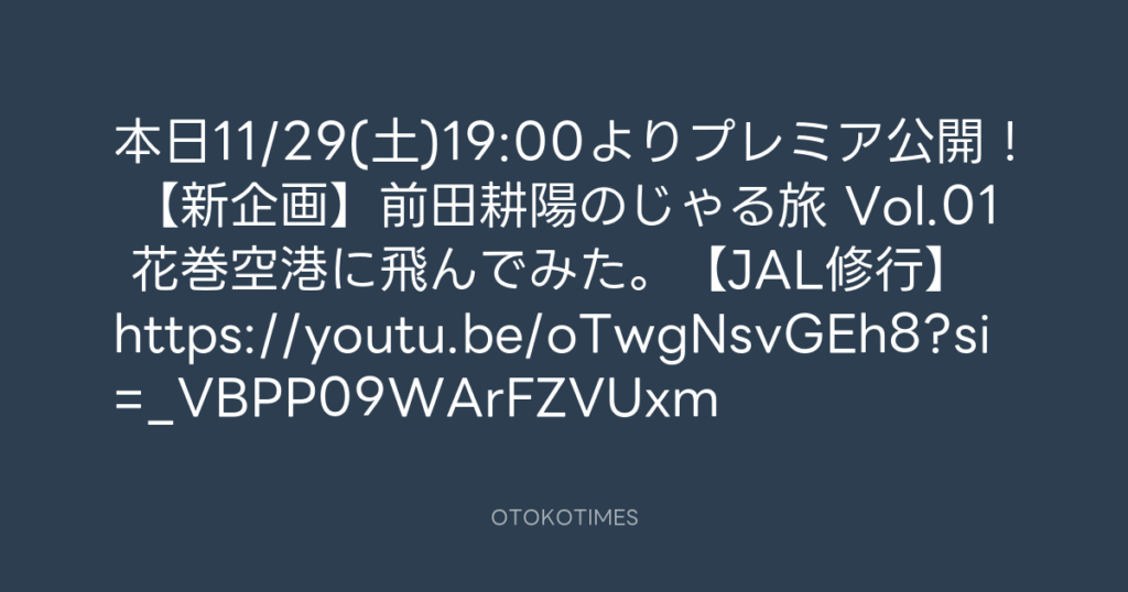 本日11/29(土)19:00よりプレミア公開! 【新企画】前田耕陽のじゃる旅 Vol.01 花巻... -