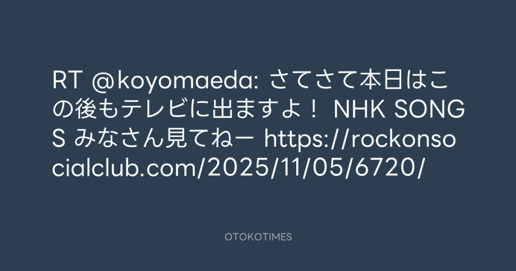 RT @koyomaeda: さてさて本日はこの後もテレビに出ますよ! NHK SONGS みなさん見... -