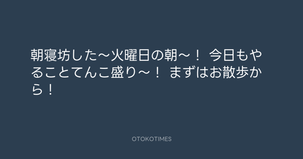 朝寝坊した〜火曜日の朝〜! 今日もやることてんこ盛り〜! まずはお散歩から! -