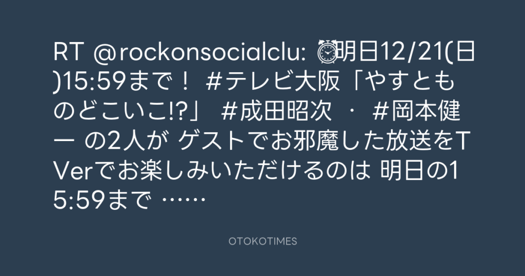 RT @rockonsocialclu: ⏰明日12/21(日)15:59まで! #テレビ大阪「やすとものどこい... -