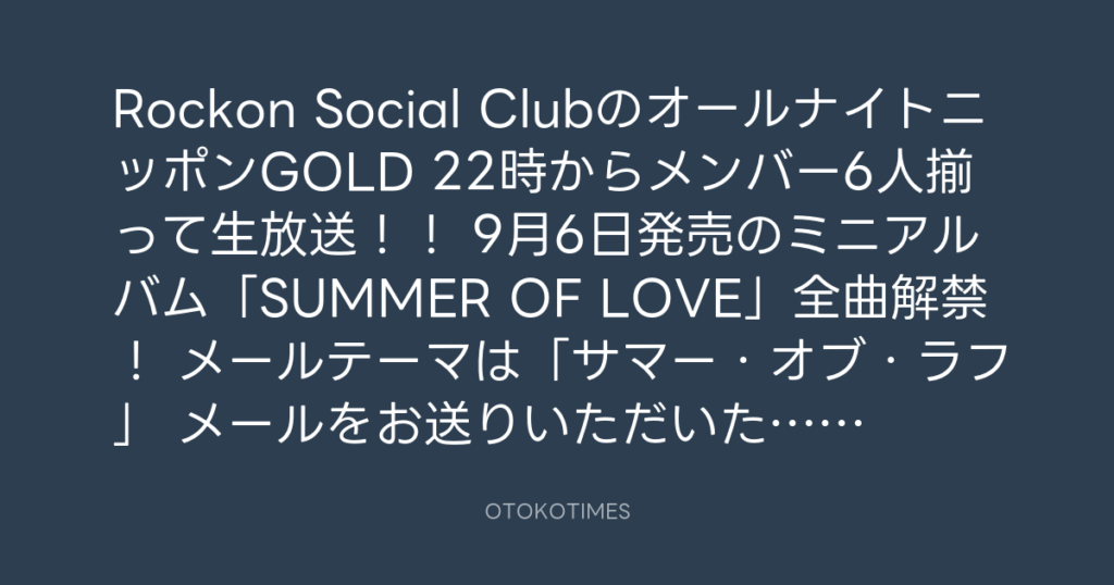 📻Rockon Social ClubのオールナイトニッポンGOLD📻 22時からメンバー6人揃って生... -