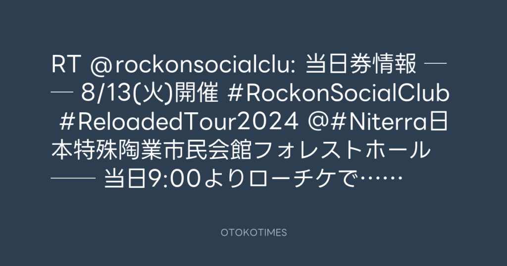 📢当日券情報🎫 🎸── 8/13(火)開催🔥 #RockonSocialClub #ReloadedTour2024 @#Nit... -