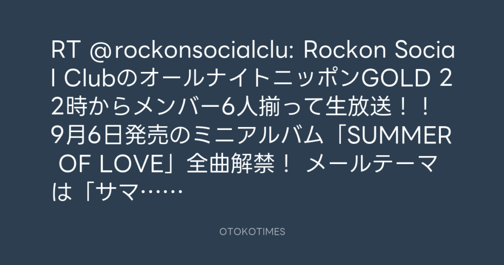 RT @rockonsocialclu: 📻Rockon Social ClubのオールナイトニッポンGOLD📻 22時か... -