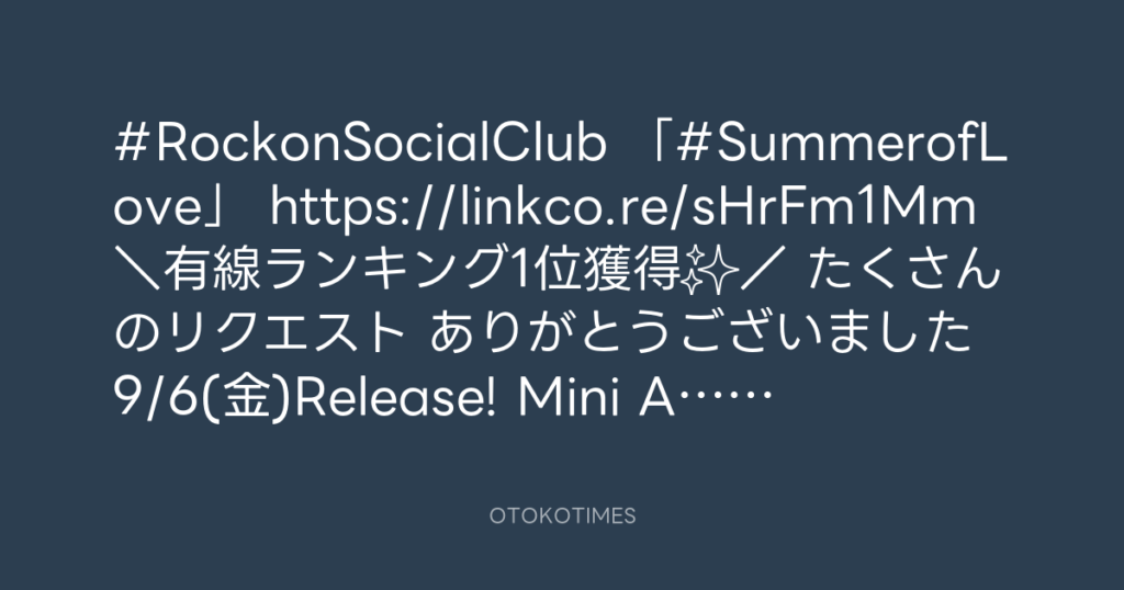 #RockonSocialClub 「#SummerofLove」 🎧https://linkco.re/sHrFm1Mm \有線ランキ... -